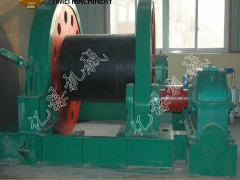 主轴装置包括:主轴、齿轮、卷筒、制动轮、轴承座极轴承等。减速器是采用球面蜗轮副减速,加有yi级变速齿轮。转换变速手柄快慢速位置,可变换快慢两种速度。工作制动器采用瓦块式制动器,启动电机,电动液压推动器松闸,停止电机则弹簧力制动。全制动器为瓦块浮动式,靠重锤下落进行制动,电动液压推动器松闸。